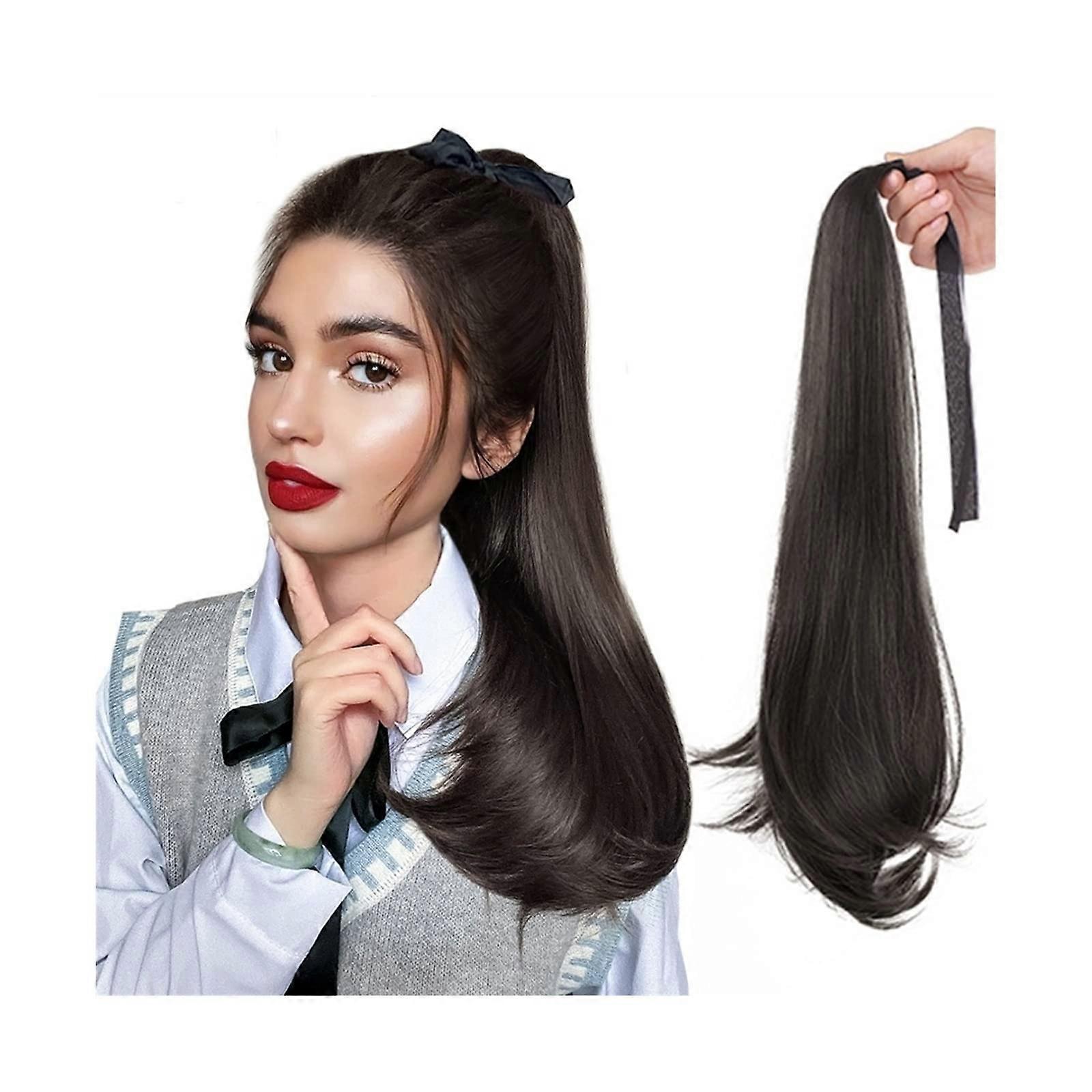 Long Straight Clip In Ponytail Extension 40cm 50cm Wrap Around Synthetic Hairpiece for Women