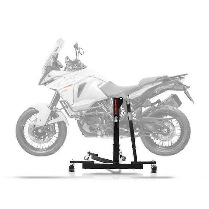 The central motorcycle lift ConStands Power-Evo NEW is specially designed for the KTM 1290 Super Adventure R (2017–2020), a powerful and tall machine requiring a particularly reliable lifting support. Thanks to its model-specific adapter plate, this complete kit ensures fast, stable, and secure lifting, ideal for maintenance, adjustments, and winter storage. Its robust center stand allows you to lift the motorcycle effortlessly, even with its imposing size. The reinforced double wheels guarantee remarkable maneuverability, making it easy to move around the workshop or garage. With dimensions of 78 × 54 × 75.5 cm and a maximum load capacity of 300 kg for only 17 kg of self-weight, it is a durable and safe tool, perfectly suited for KTM's high-end trail bikes. The Power-Evo NEW version stands out with its exclusive features: - An automatic circuit breaker ensuring enhanced safety during lifting, - Full compatibility with lowered carts, - An intelligent lever system maximizing the lifting effect for smoother and more comfortable lifting. Perfect for workshop tasks, mechanical interventions, or long-term storage, this central motorcycle lift allows you to handle your KTM 1290 Super Adventure R with professional precision. Highlights: - Complete kit with dedicated KTM 1290 Super Adventure R (2017–2020) adapter plate - Power-Evo NEW version: even more secure and efficient - Quick, stable, and effortless central lifting - Robust double wheels for optimal maneuverability - Dimensions: 78 × 54 × 75.5 cm - Load capacity 300 kg – self-weight 17 kg - Ideal for winter storage and regular maintenance - Power-Evo exclusive: automatic circuit breaker, compatibility with lowered carts, intelligent lever system