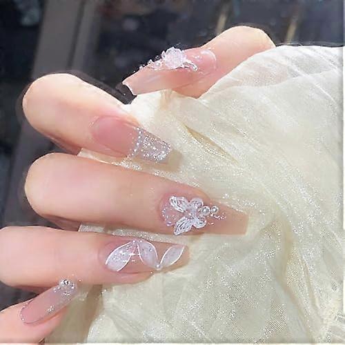 Coffin Press On Nails 24pcs Square Pink Butterfly Design Glue On Fake Nails Kit