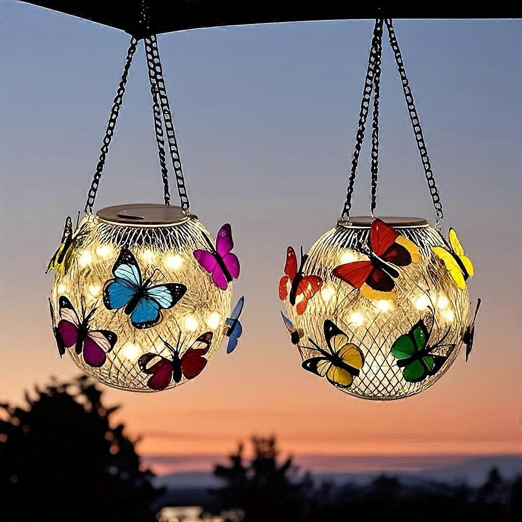 1/2pcs Solar-Powered Butterfly Lanterns Metal Hanging Outdoor Lights, Yard Decor - Holiday Gift Solar Outdoor Decorations