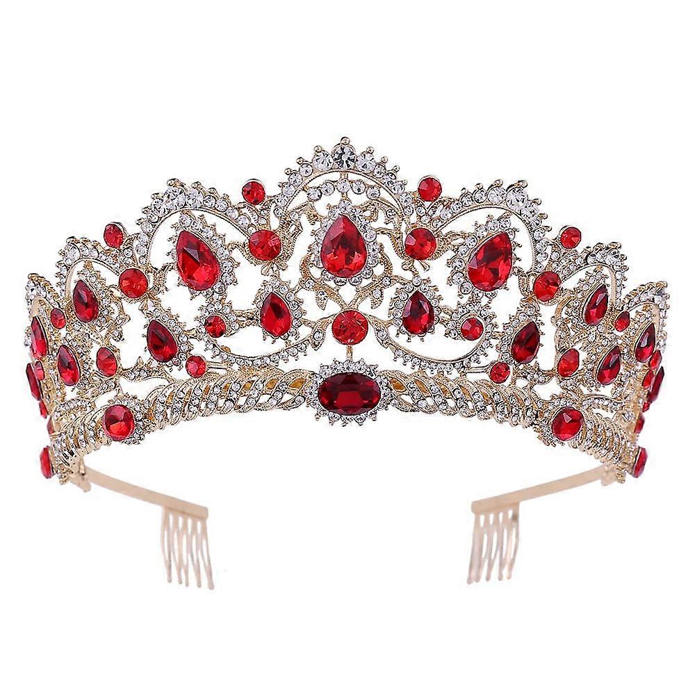 Gold Baroque Red Crystal Tiara Crown for Women with Comb, Vintage Wedding and Pageant Headpiece