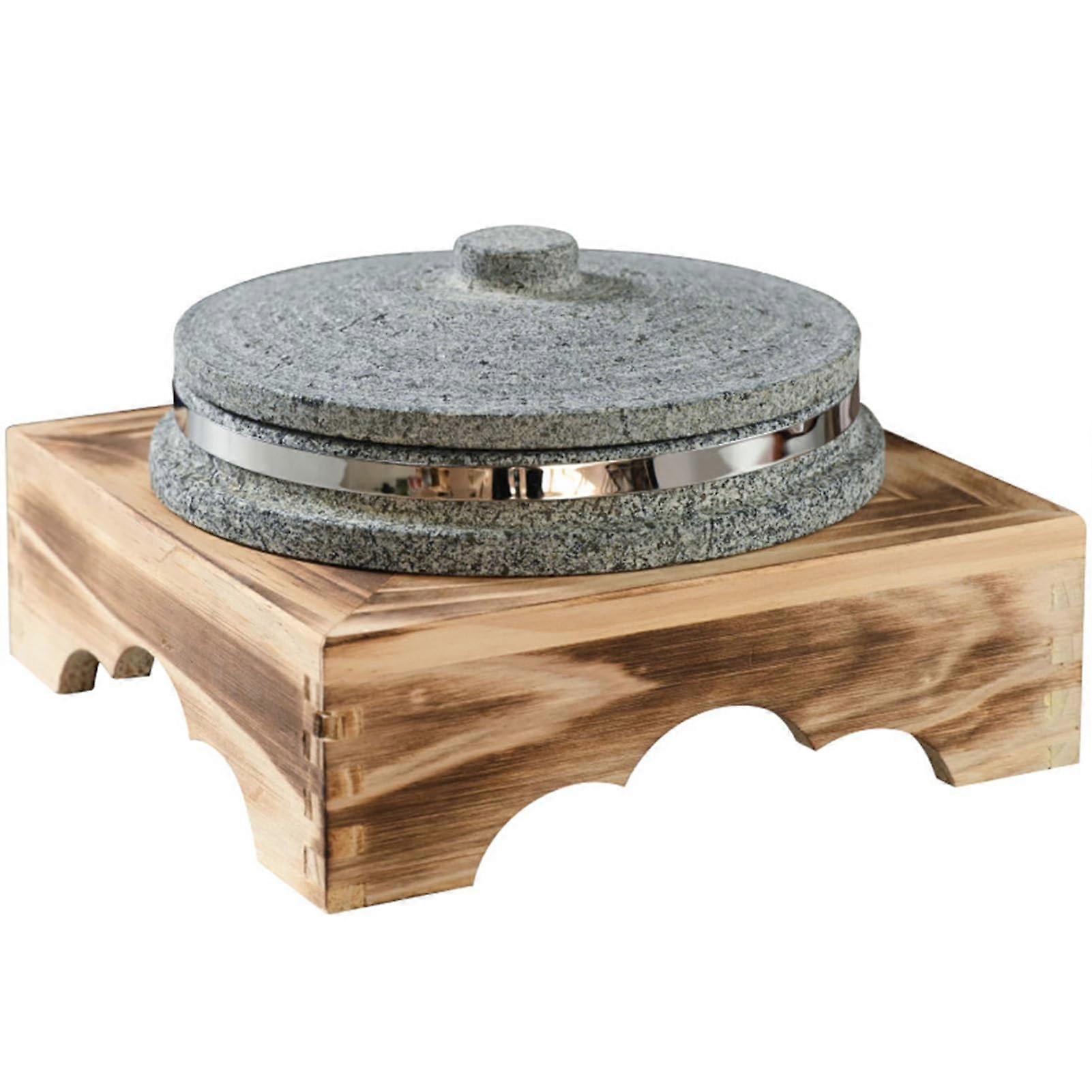 Korean Stone Bibimbap Bowl with Lid and Wooden Tray, Heat Retaining Hot Pot for Rice and Soup, 12cm