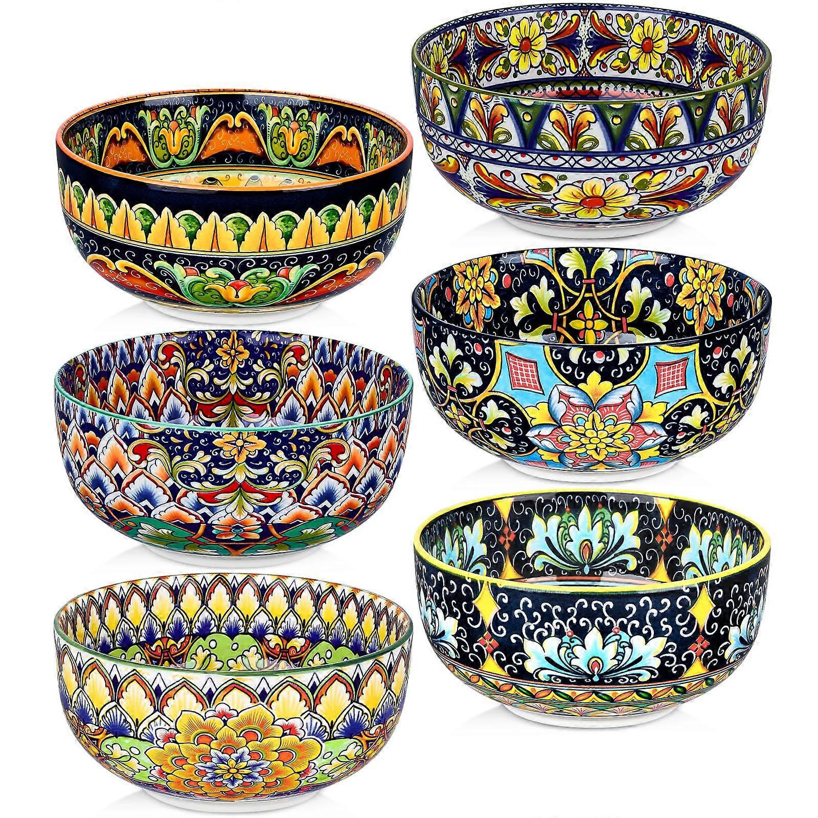 Ceramic Cereal Bowls Set of 6, 28oz Bohemian Soup Bowls, Vibrant Microwave Dishwasher Safe