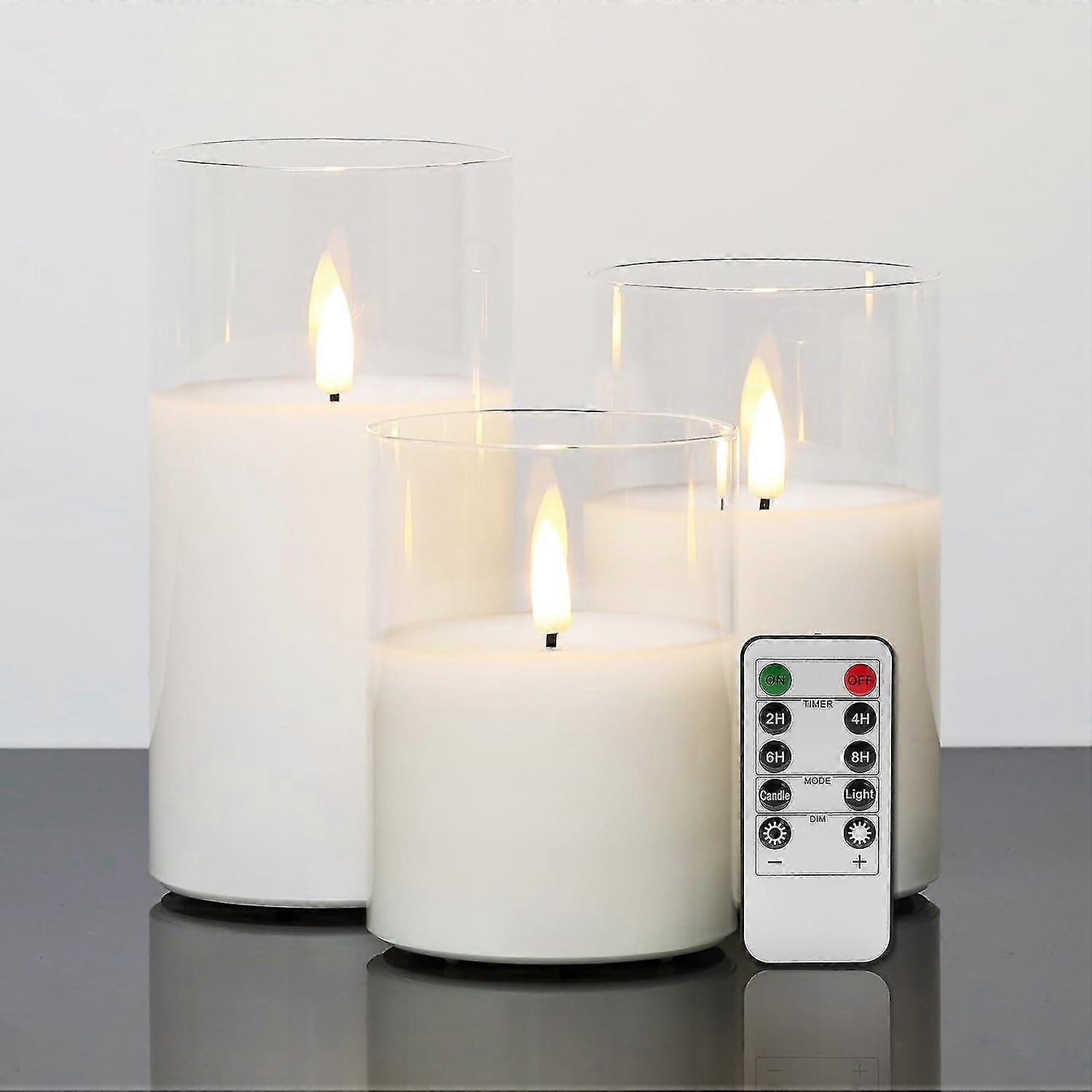 Clear Glass LED Lights with Remote Control, Flickering Realistic Flameless Battery Candles, Set of 3, D 3" H 4" 5" 6