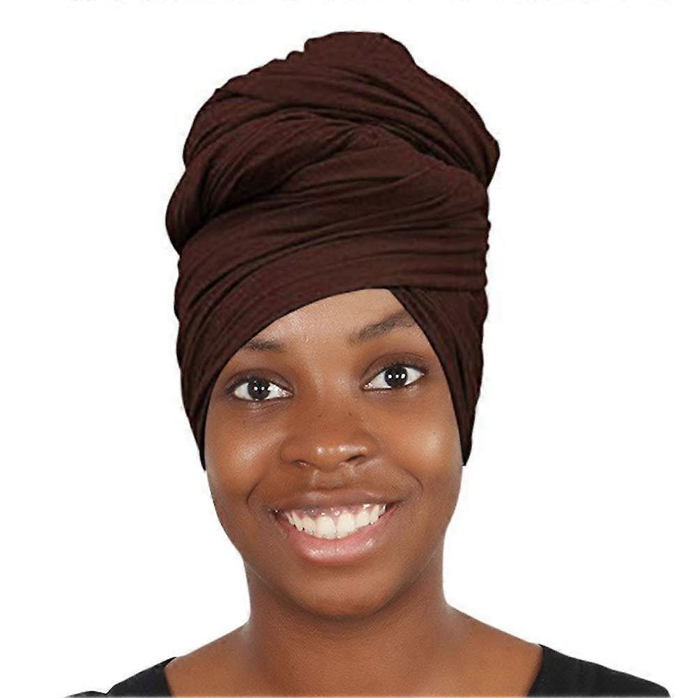 Coffee Color Stretch Head Wrap for Women Pretied Turban Headband Large Polyester Scarf 71x33