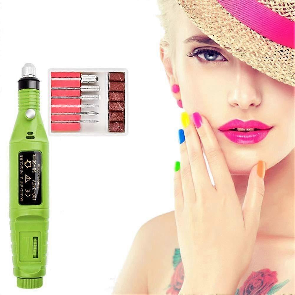 Electric Nail Drill with 6 Bits and Sanding Bands, Professional Manicure Pedicure Tool, Green