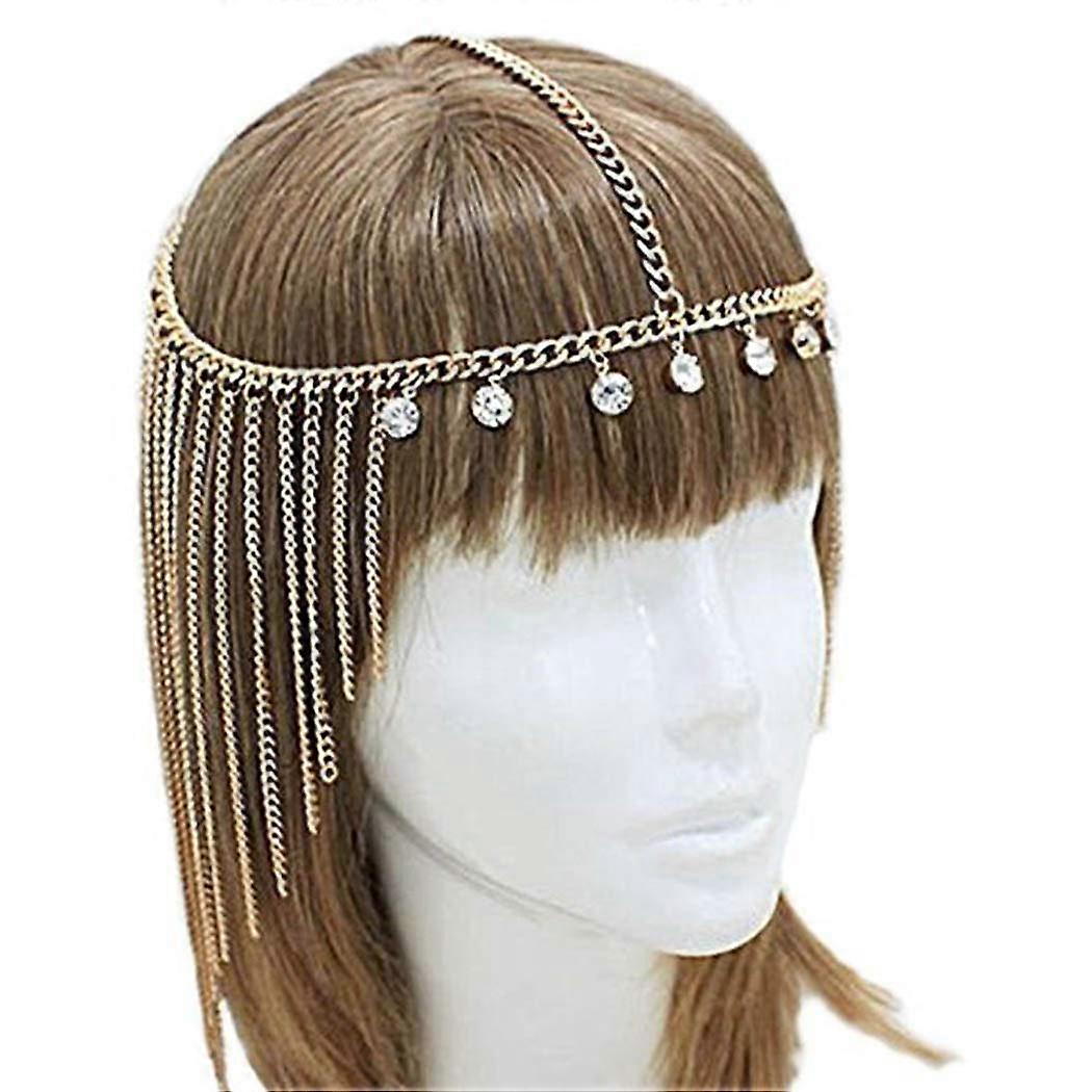 Crystal Headband with Gold Tassel Forehead Jewelry for Women, Alloy Design for Festival and Beach