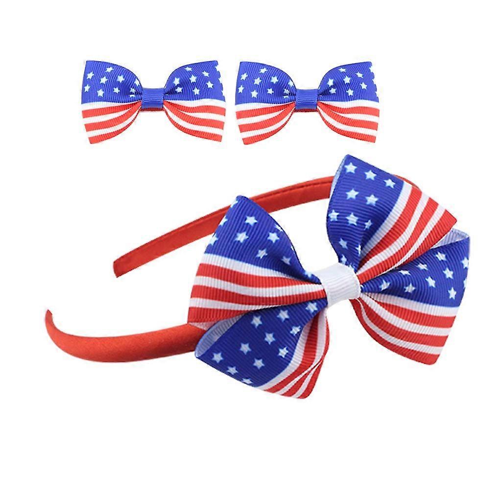 Girls Bowknot Hair Hoop Set with Clips for Kids Festival Day, Durable Grosgrain Ribbon, Set D