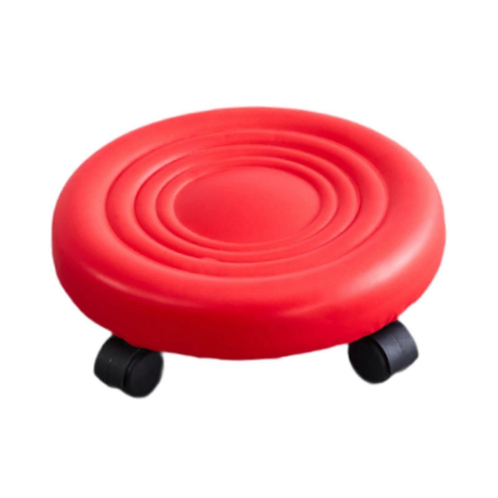 Low Rolling Stool with Wheels, 360° Rotating Seat, Padded Cushion, Durable PU Leather, Red