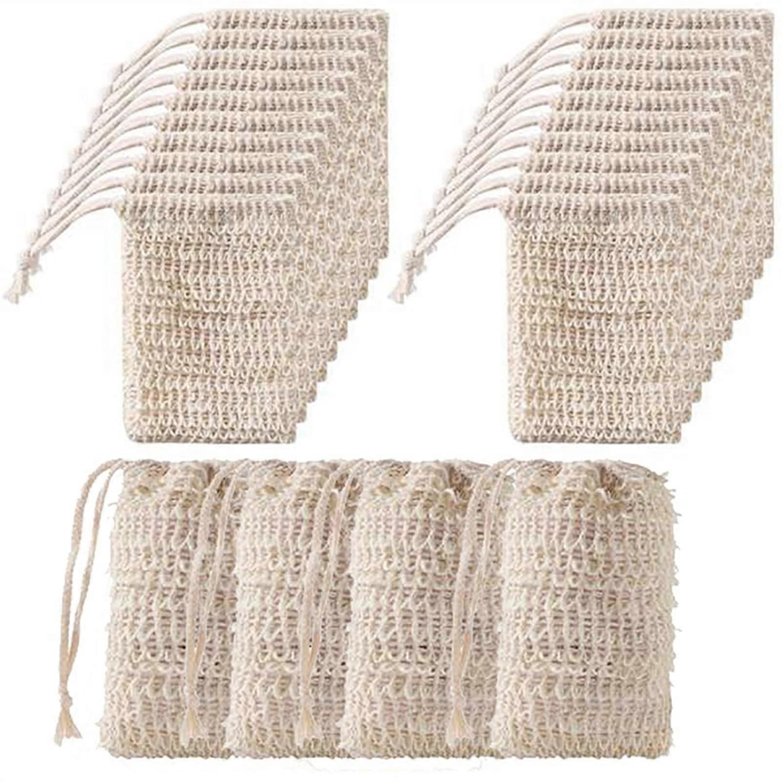 Sisal Soap Bag for Shower and Bath, Natural Exfoliating Pouch with Drawstring, 36PCS