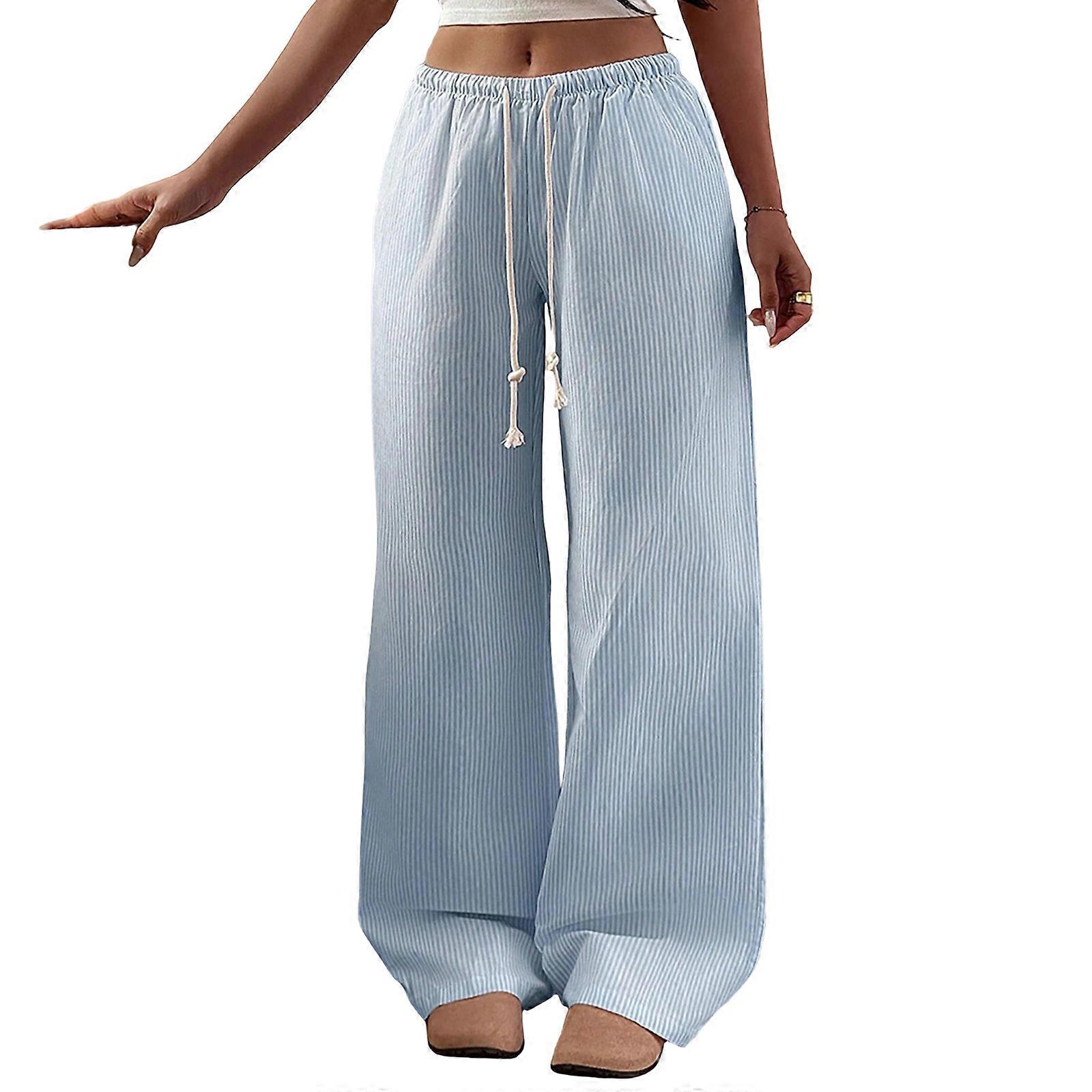 Women's striped casual loose drawstring elastic waist wide-leg boxer briefs with belt and pockets Sky Blue XS