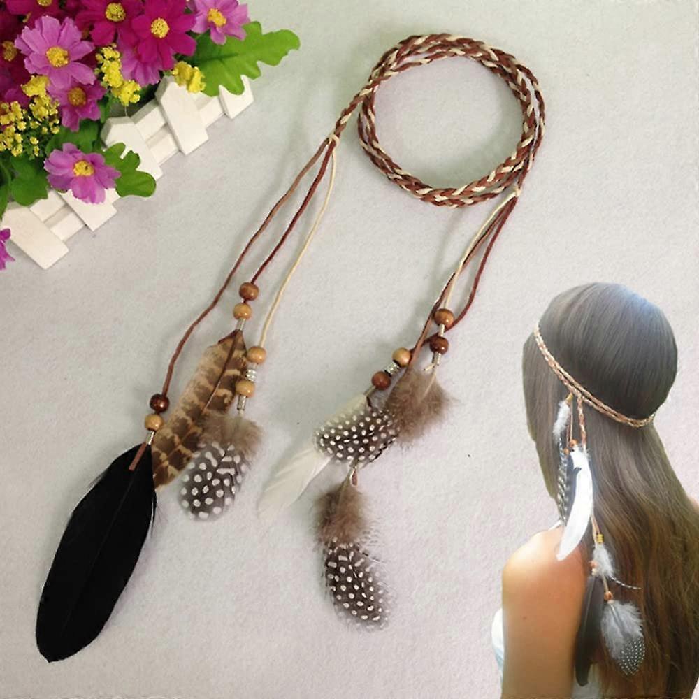 2pcs Bohemian Feather Headband Adjustable Fit Festival Hair Accessories for Women Girls Party