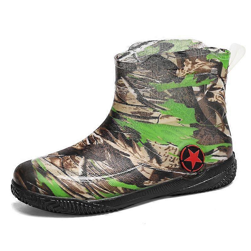 Rugged Outdoor Design:Camouflage high-top + red star detail suits adult mud/garden tasks—ideal for rainy-day outdoor work. Waterproof Elastic Fabric:Stretchy, sealed fabric keeps feet dry in puddles/mud; easy to slip on/off. Non-Slip Thick Sole:Rugged rubber sole grips wet surfaces; stable for garden chores, fishing or rainy walks. Lightweight Comfort:Thin elastic build avoids bulk; comfortable for all-day wear during outdoor tasks. Versatile Rain Footwear:Suitable for gardening, camping or rainy errands; easy to clean (wipe with water) after use.