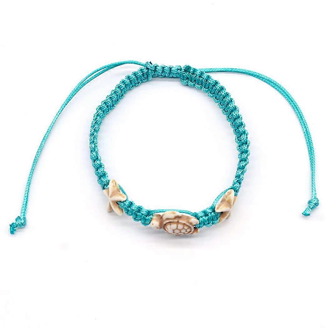 Boho Turquoise Anklet for Women Adjustable Rope Beach Jewelry with Starfish and Turtle Charm
