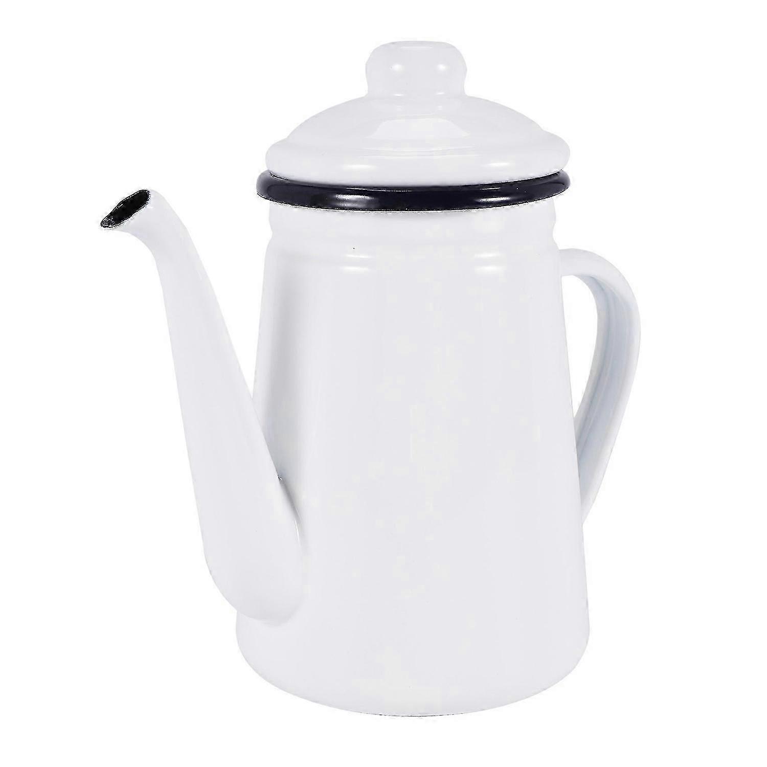 1.1L enamel coffee maker, suitable for gas and induction cooktops, white.