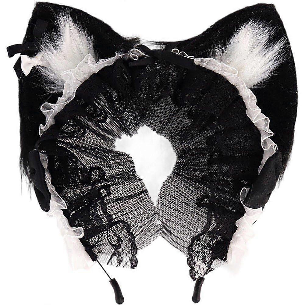 Black Lace Plush Cat Ears Headband for Cosplay Parties Cute Fuzzy Hair Accessory