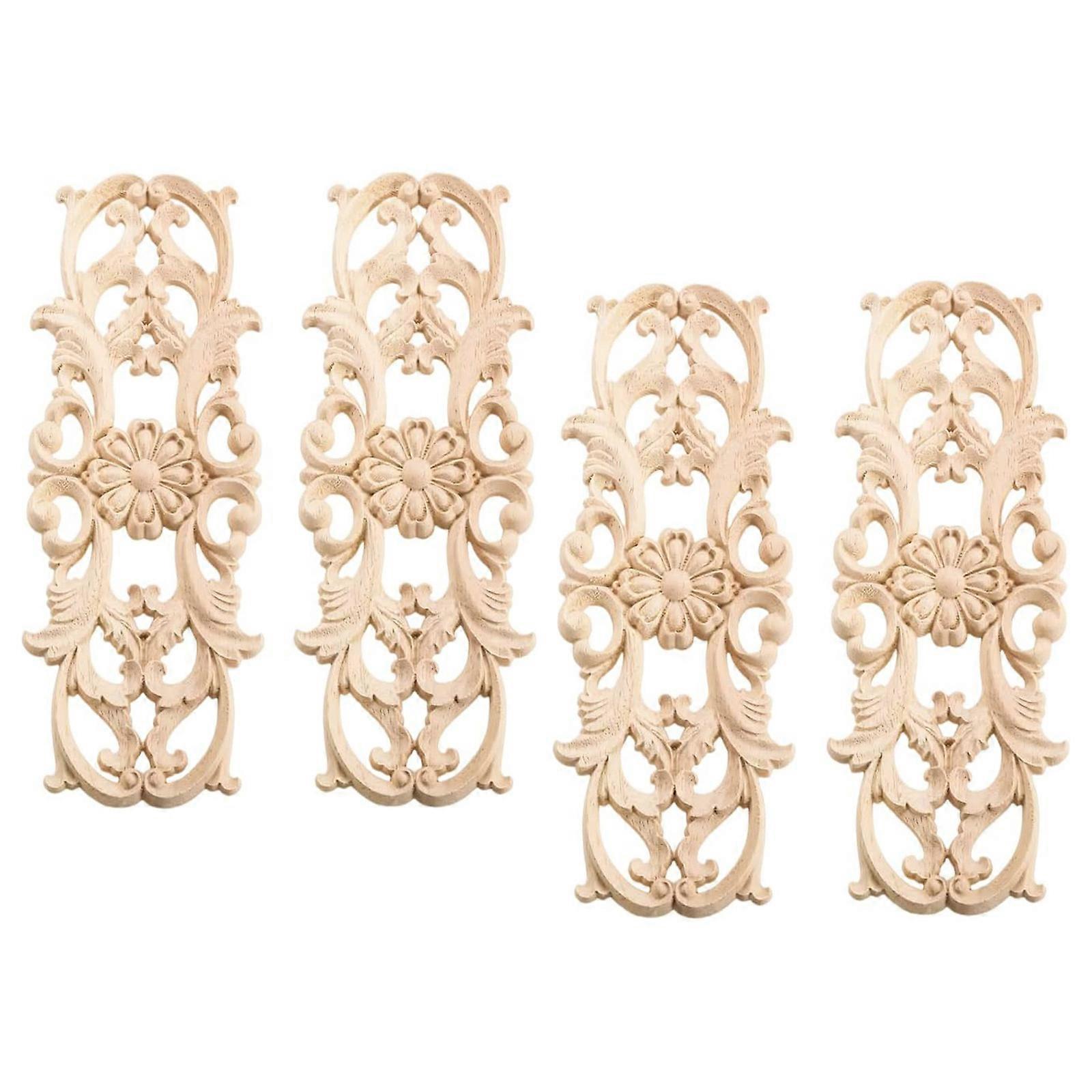 Set of 2/4pcs Wood Appliques Onlays Handcrafted Long Wooden Carvings Decals Overlays Retro Door Furniture Decoration 4 pack