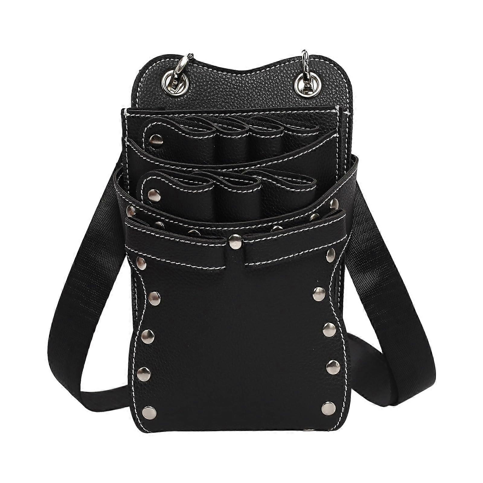 Hairdressing Scissor Holster PU Leather Barber Tool Pouch 7 Pocket with Adjustable Crossbody Strap