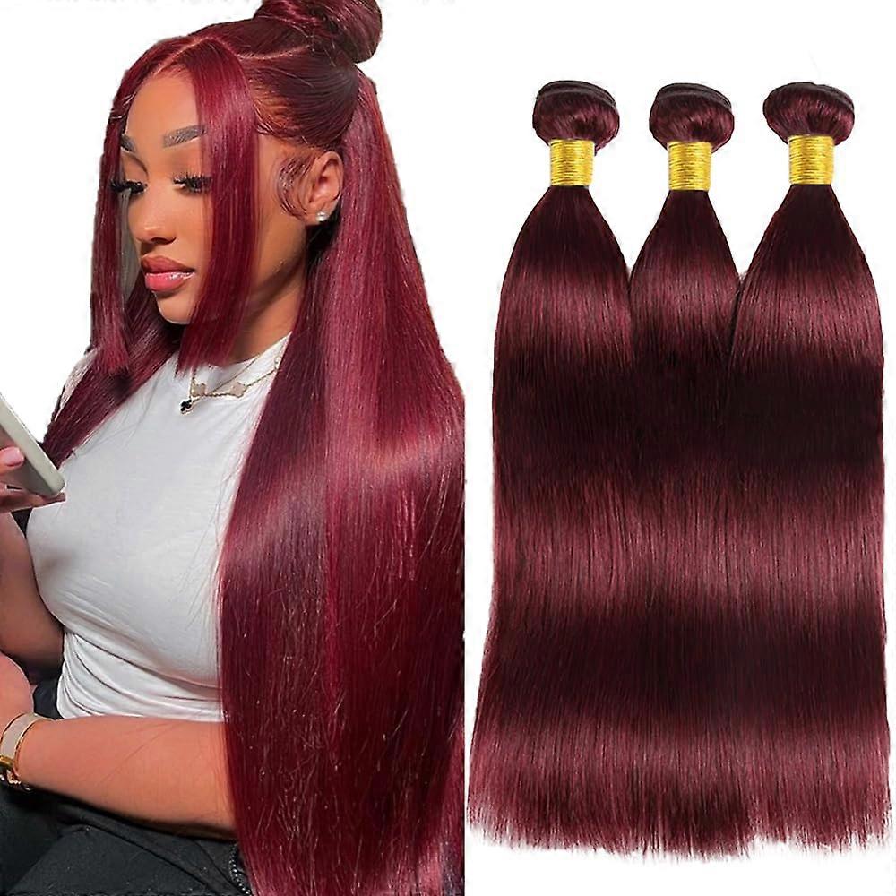 99J Burgundy Human Hair Bundles Brazilian Straight Extensions 24 26 28 Inch Virgin Weave 3pcs