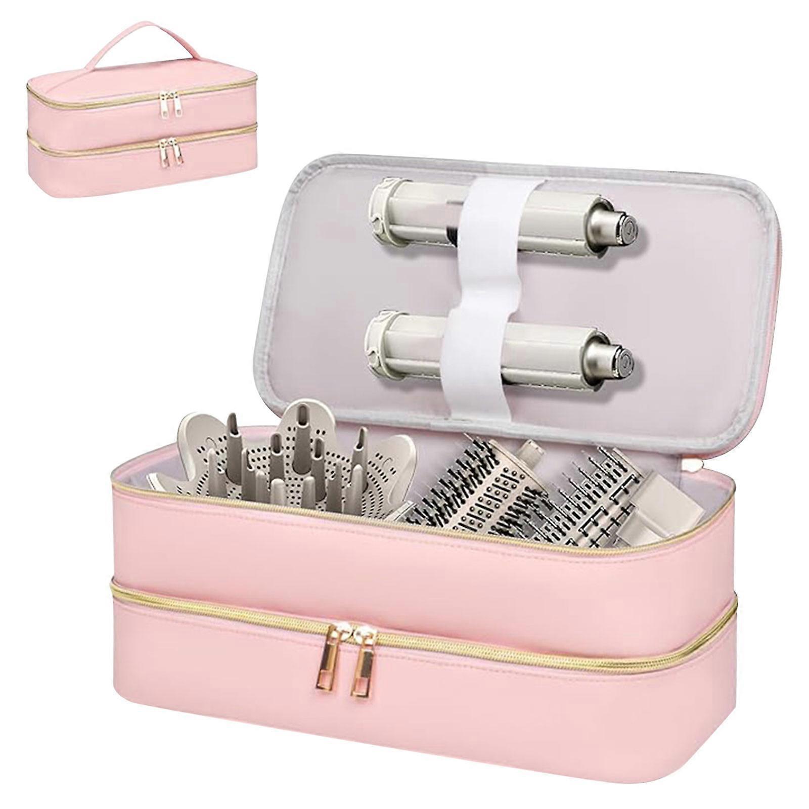 Travel Hair Dryer Carrying Handbag Double Layer Design Waterproof PU Storage Organiser Case Box for Daily Care Items Pink