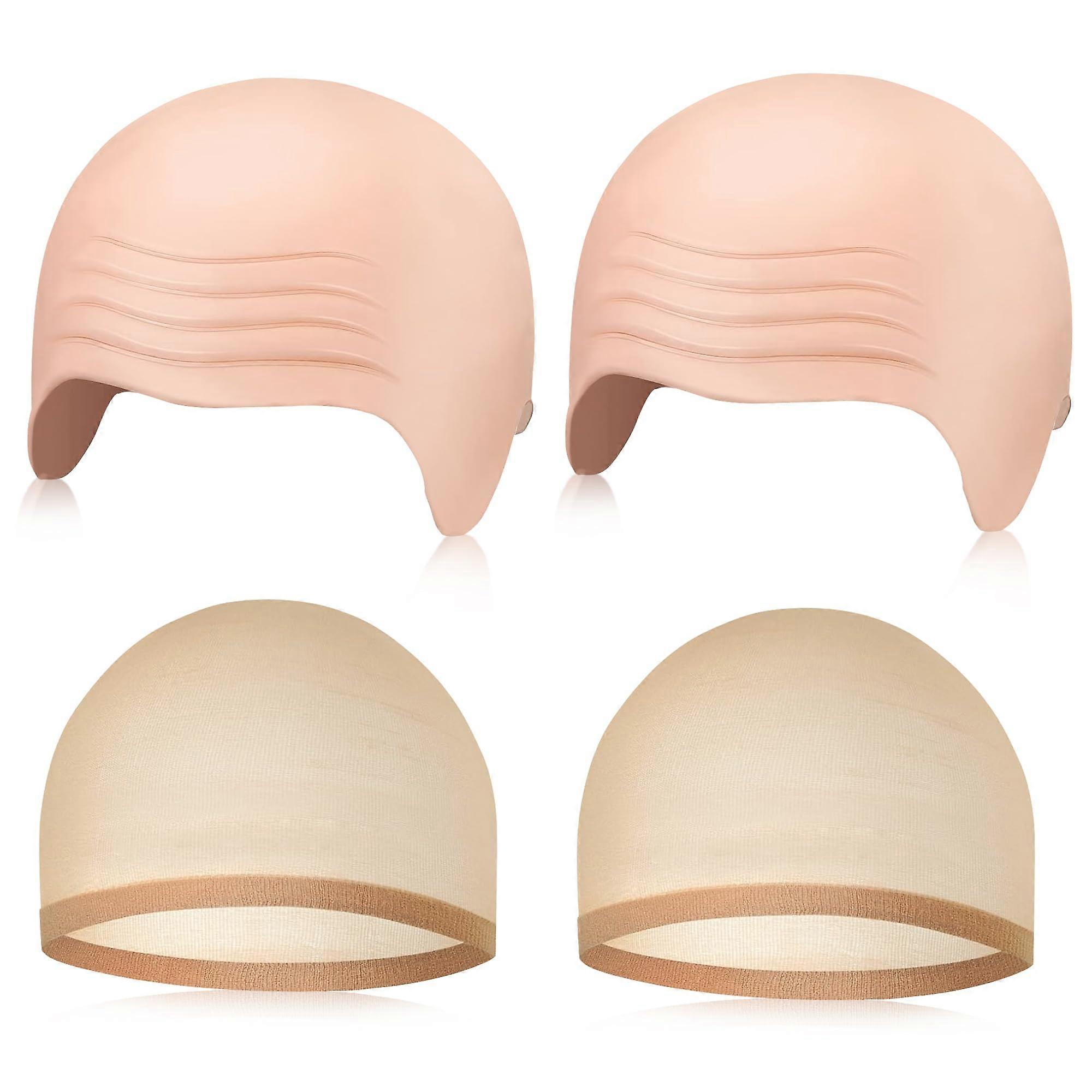 Halloween Bald Cap and Wig Cap Set for Adults Cosplay Party with Natural Skin Blend Fit