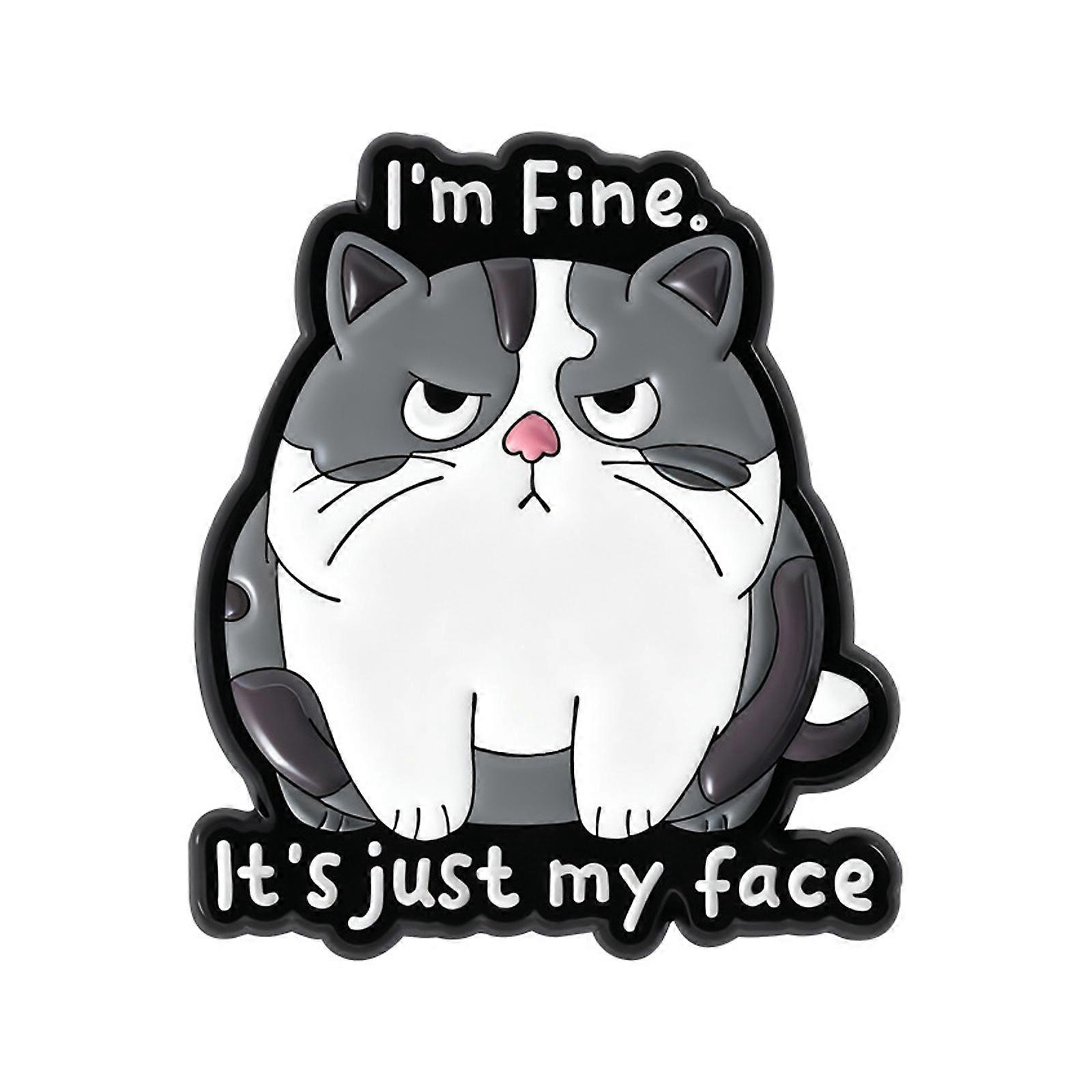 Adorable Fat Puss Enamel Pin Brooch Featuring Sarcastic I'm Fine Text Expressing Impatience For Lapel or Bag Jewelry Multicolor