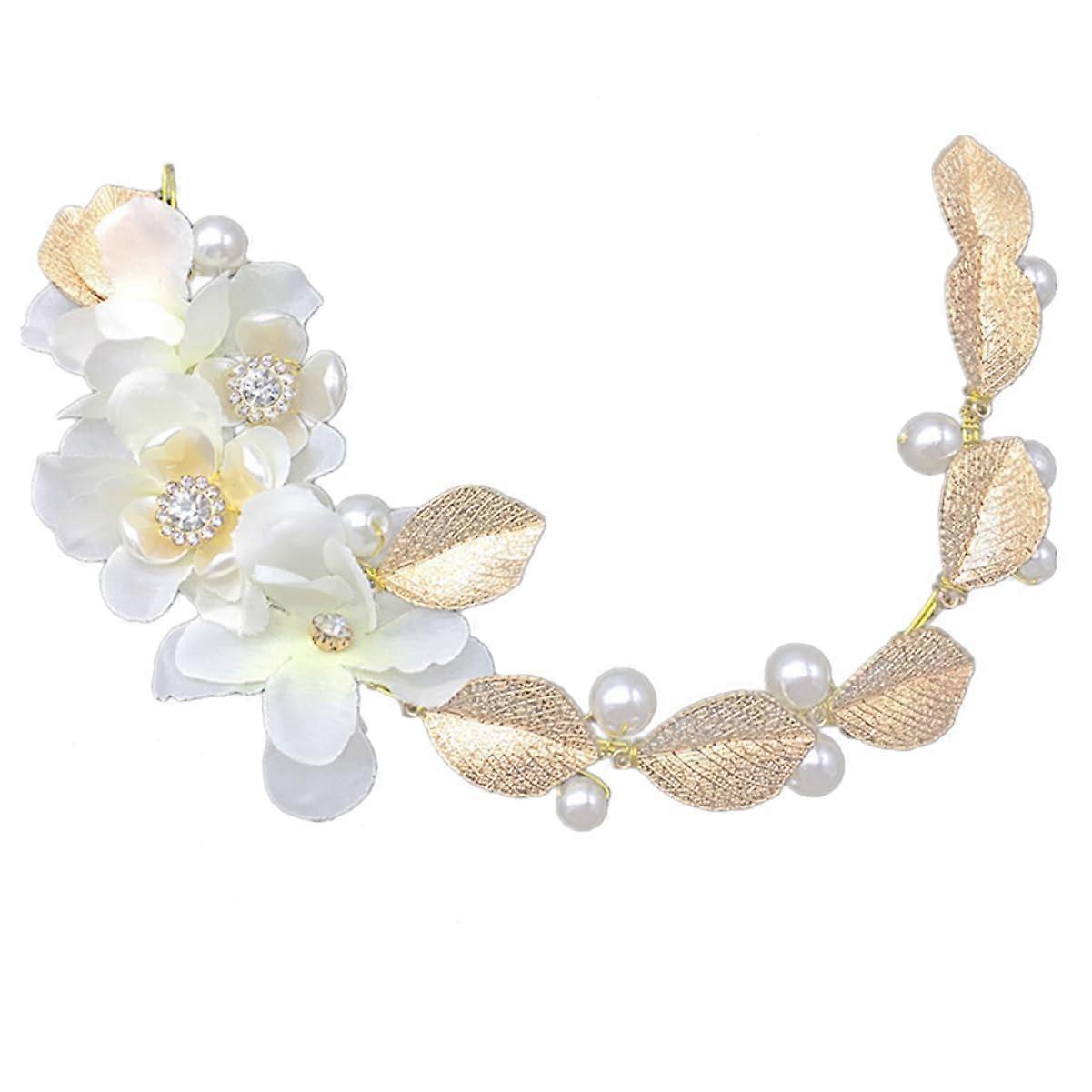 Bridal Headband with Pearls and Flowers Adjustable Wire Wedding Hair Vine for Brides