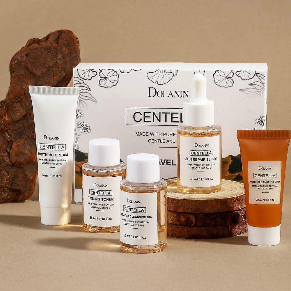 Centella Asiatica 5-Piece Skincare Set Soothing Cream, Cleanser, Toner & Serum Travel-Friendly Facial Kit | Pure Centella for Gentle, Calming Daily C