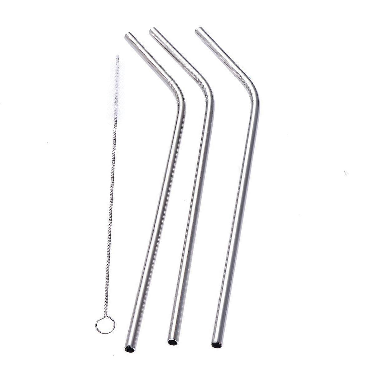4pcs Stainless Steel Drinking Straws Reusable Curved Straws Set with Cleaning Brush