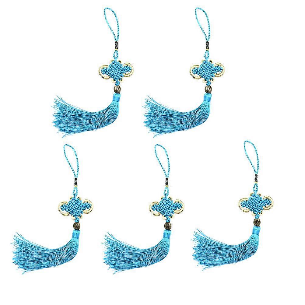 5Pcs Tassel Hanging Pendant Chinese Knot Car Pendant Traditional Home Decoration Spring Festival Ornament Sky-Blue