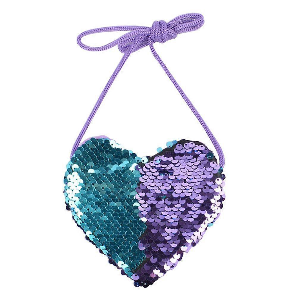 Sequin Bling Heart-shaped Crossbody Bag Messenger Bag Change Purse for Kids Children (Blue Purple, Stap for Random Color)