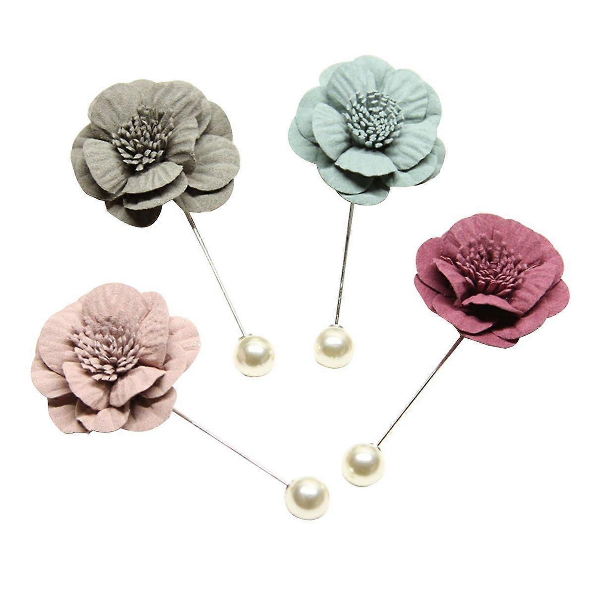 4pcs Men Lapel Flower Pin Brooches for Suits Multi Color Men Wedding Flower Corsage Lapel Pin Brooches Handmade Jewelry