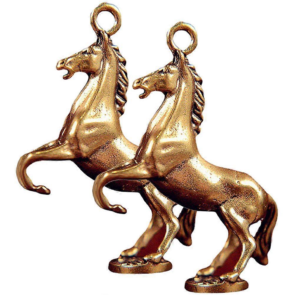 2pcs Brass Keyring Pendant Retro Brass Horse Keychain Decoration DIY Pendant