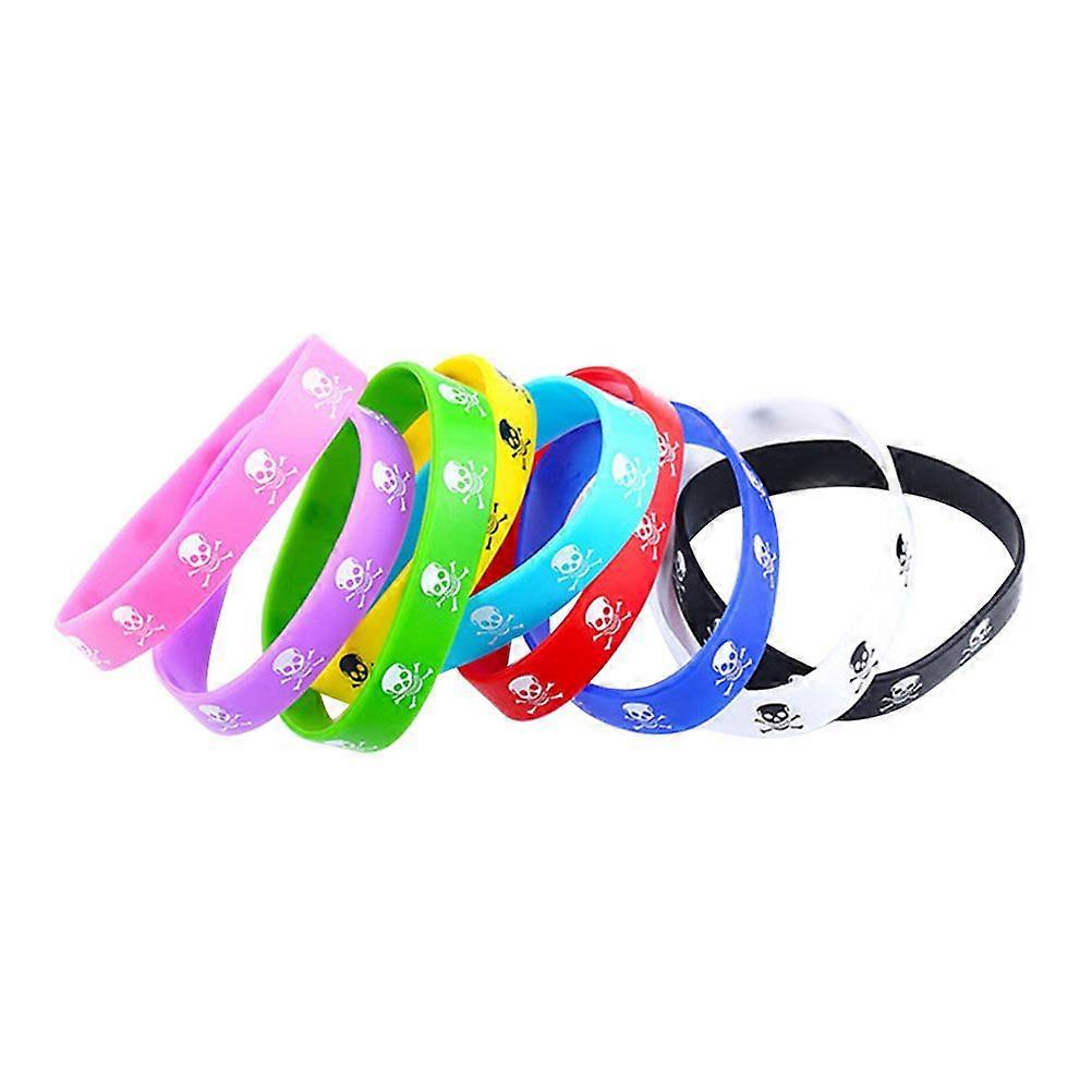 15pcs Sports Silicone Bracelet Wrist Band Hand Rings Decoration Fashion Candy Color Exaggerated Skull Pattern Band Set (Mixed Color)