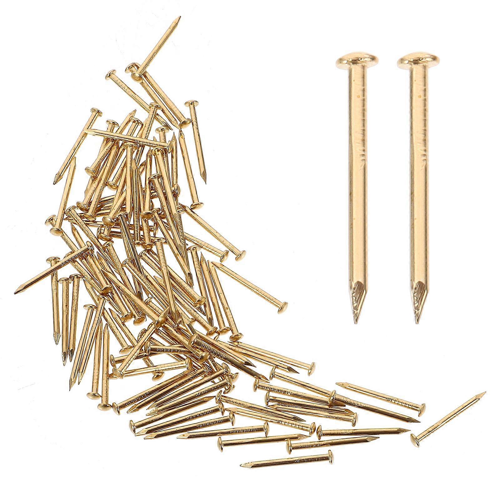 300 Pcs 1.2x1.5mm Chinese Archaize Round Head Gold Antique Pure Brass Bronze Wooden Nails for Furniture DIY Decorative Boxes (Golden)