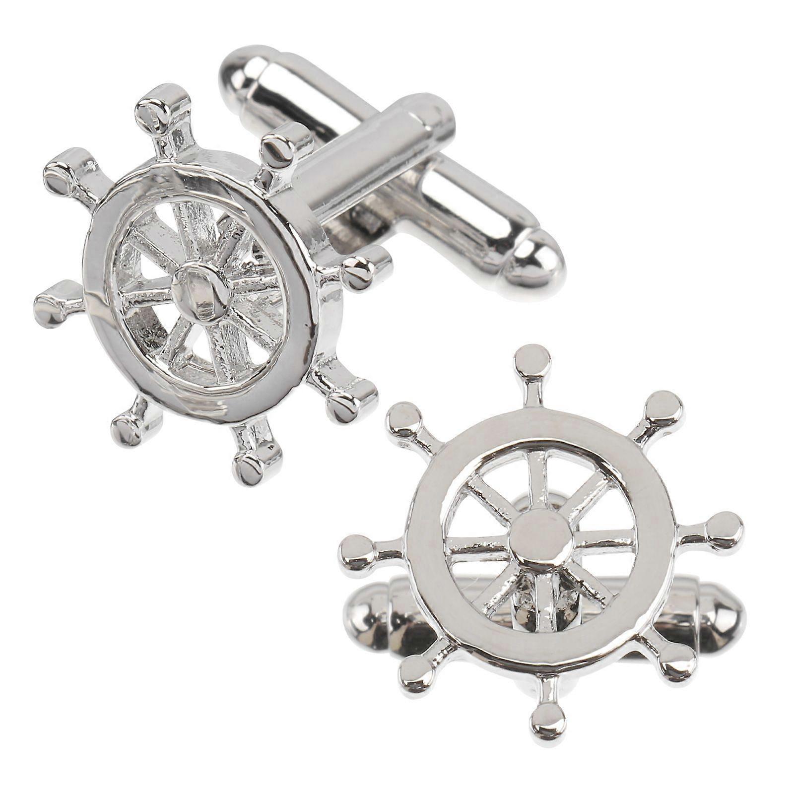 1Pair Fashion Cuff Links Male Ship Steering Wheel Cuff Studs Shirt Cuff Links