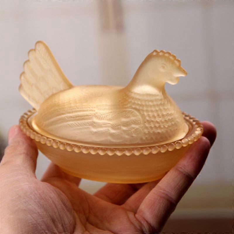 Glass Hen on Nest Candy Dish with Lid, Multi-Color Hen-Shaped Crystal Glass Bowl for Candy, Snacks, Desserts, Fruit, Retro Pastoral Tabletop Decor for