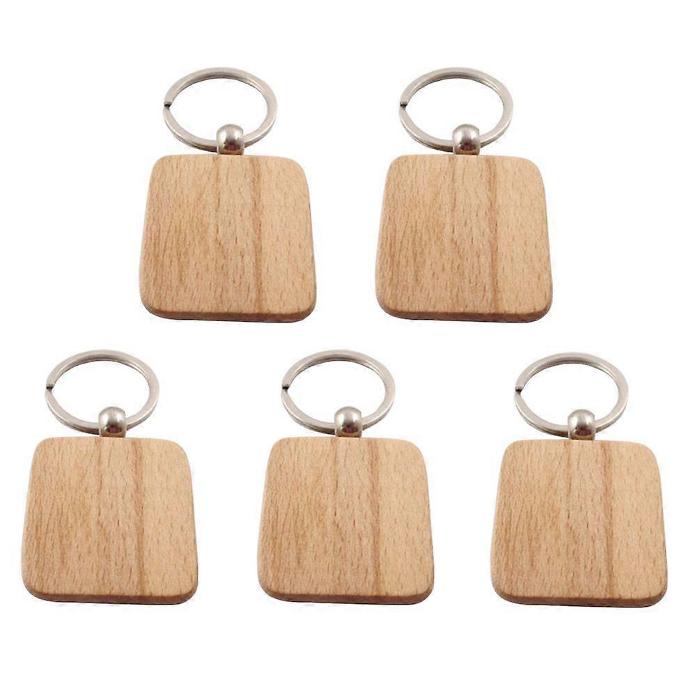 5pcs Beech Wood Keychain DIY Creative Keyring Fashionable Gift Hanging Ornament for Girls and Women (Square)