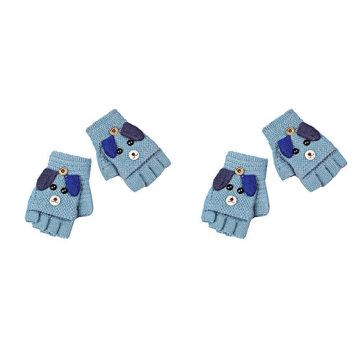 2 Pairs of Kids Winter Gloves Half Finger Gloves Cartoon Warm Gloves Outdoor Finger Gloves for Kids Children Blue