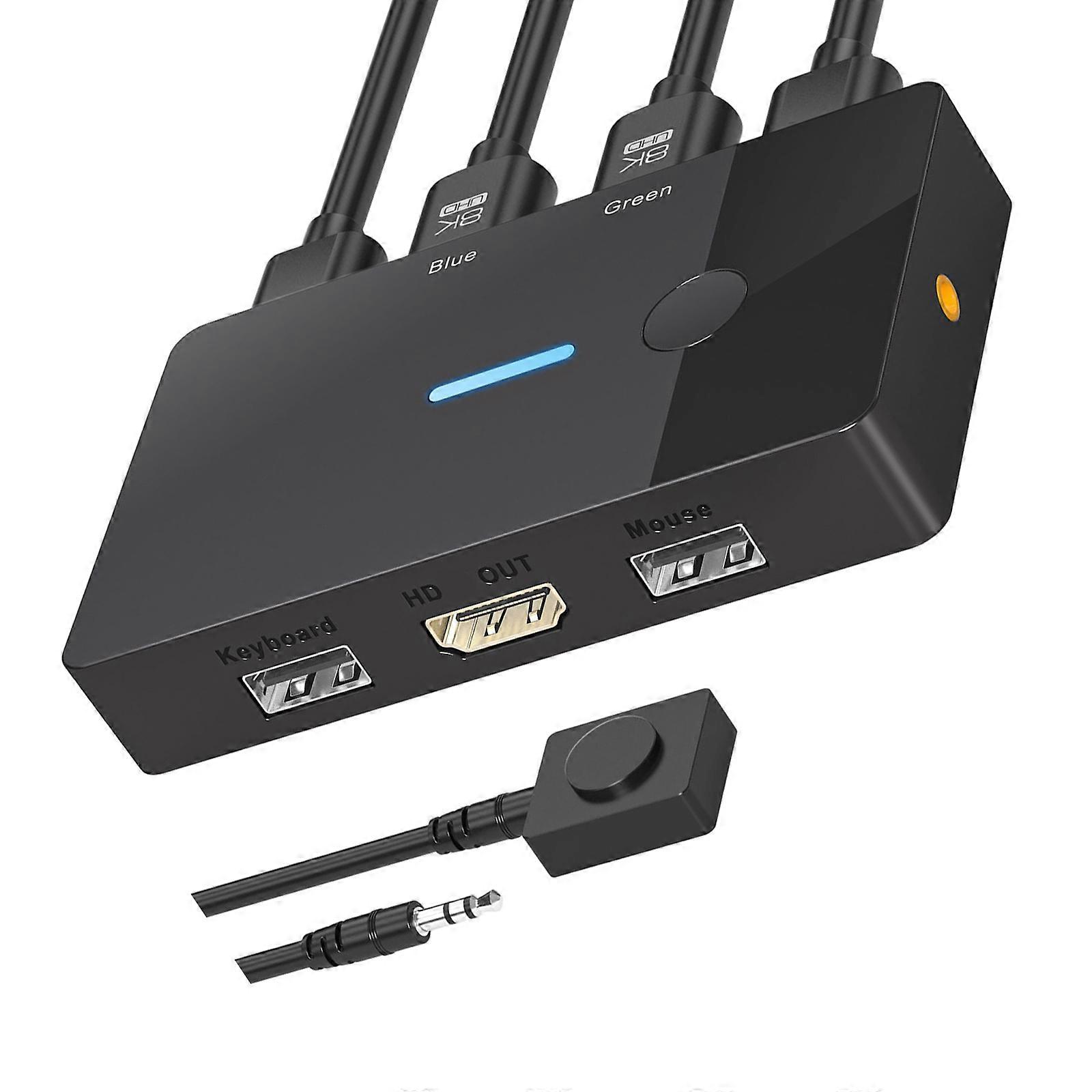 8K@60Hz Resolution HDTV KVM Switcher 1 Monitor 2 Computer Sharing Keyboard Mouse USB Plug and Play KVM Device Replacement Multicolor