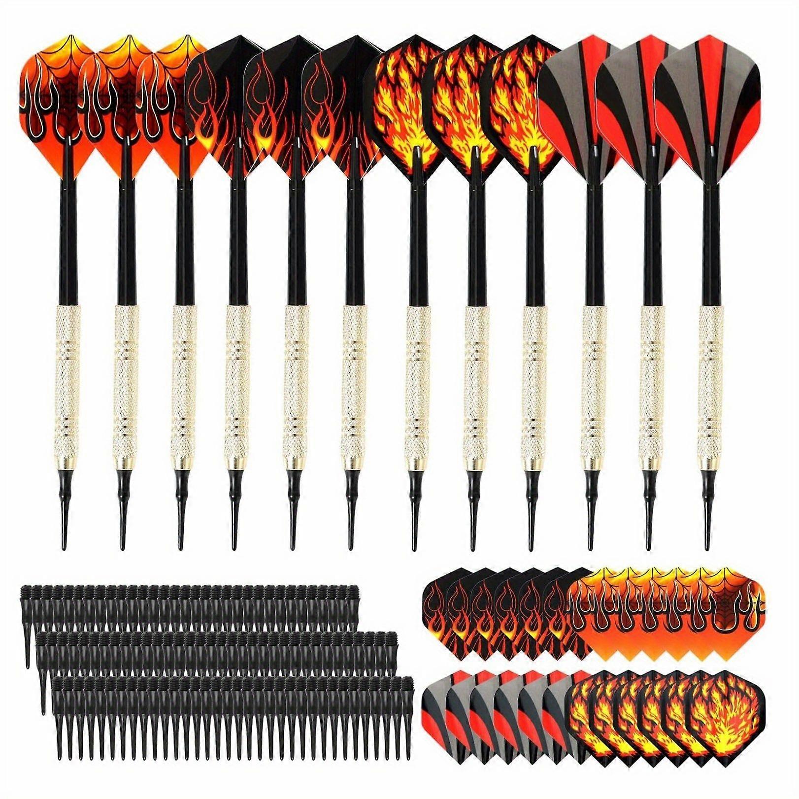 12pcs Soft Tip Darts with 24pcs Tails And 100pcs Plastic Tips, Safety Plastic Flame Pattern Kids Darts