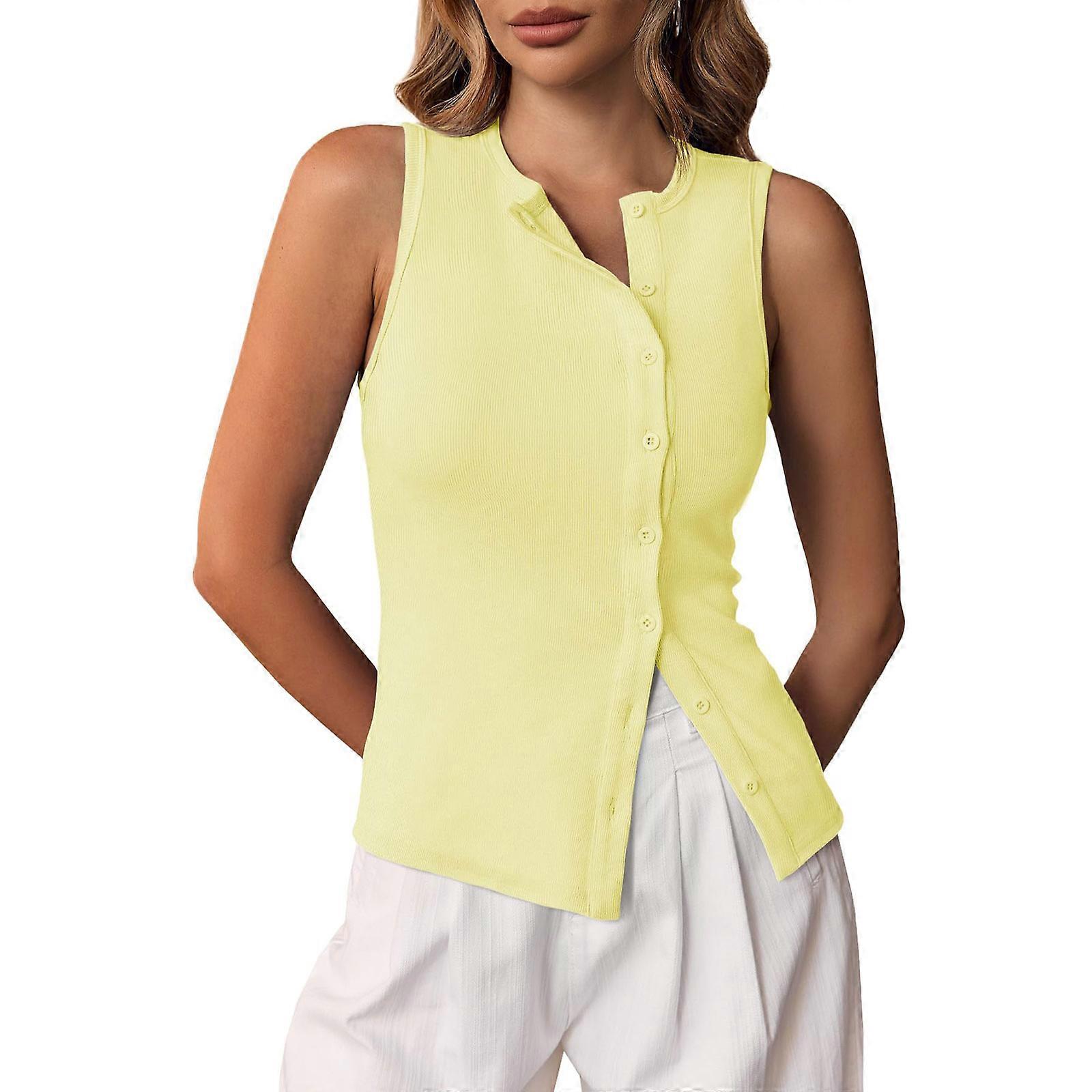 Women's collared vest top, summer sleeveless vest, fashionable ribbed slim fit shirt. Yellow XL