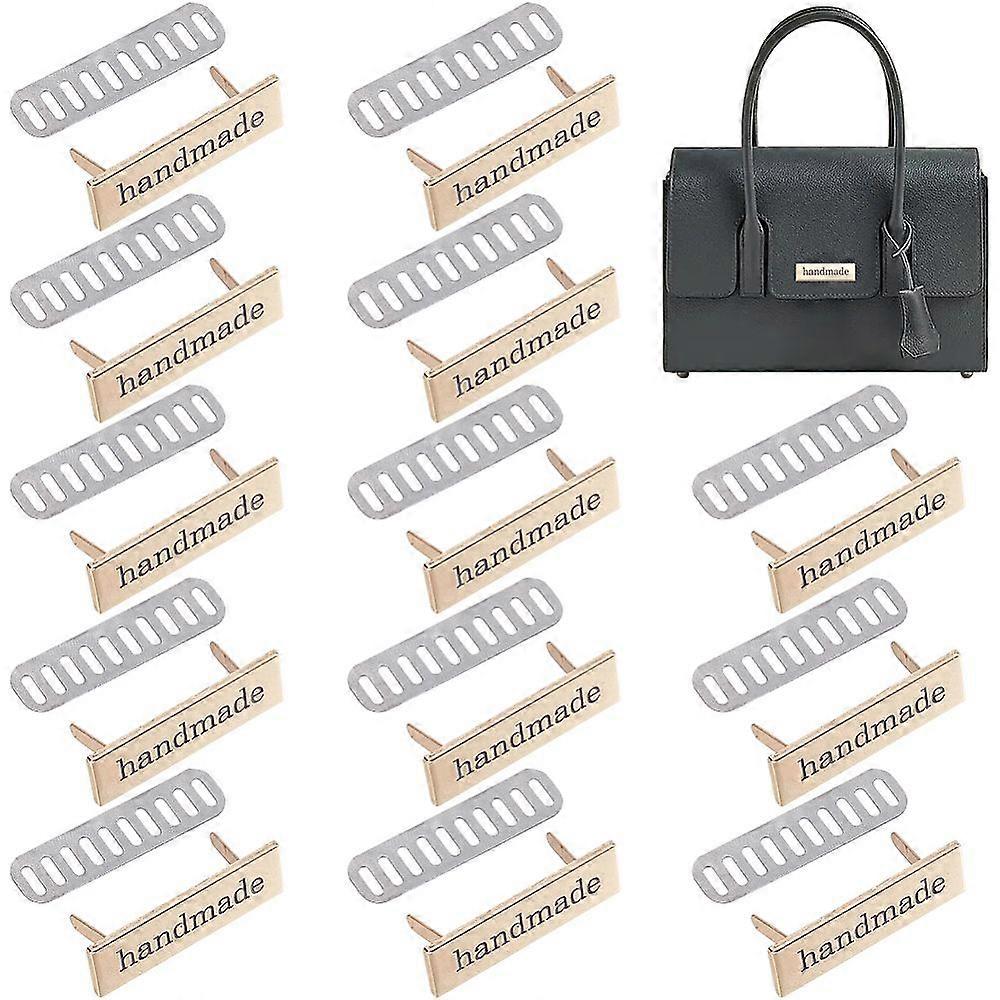 1 Box 24Pcs Gold Handmade Metal Labels Crochet Hand Tags Alloy Rectangle Hand Made Printed Label Tags Signs Sewing Items with Iron Shim for DIY Crafts
