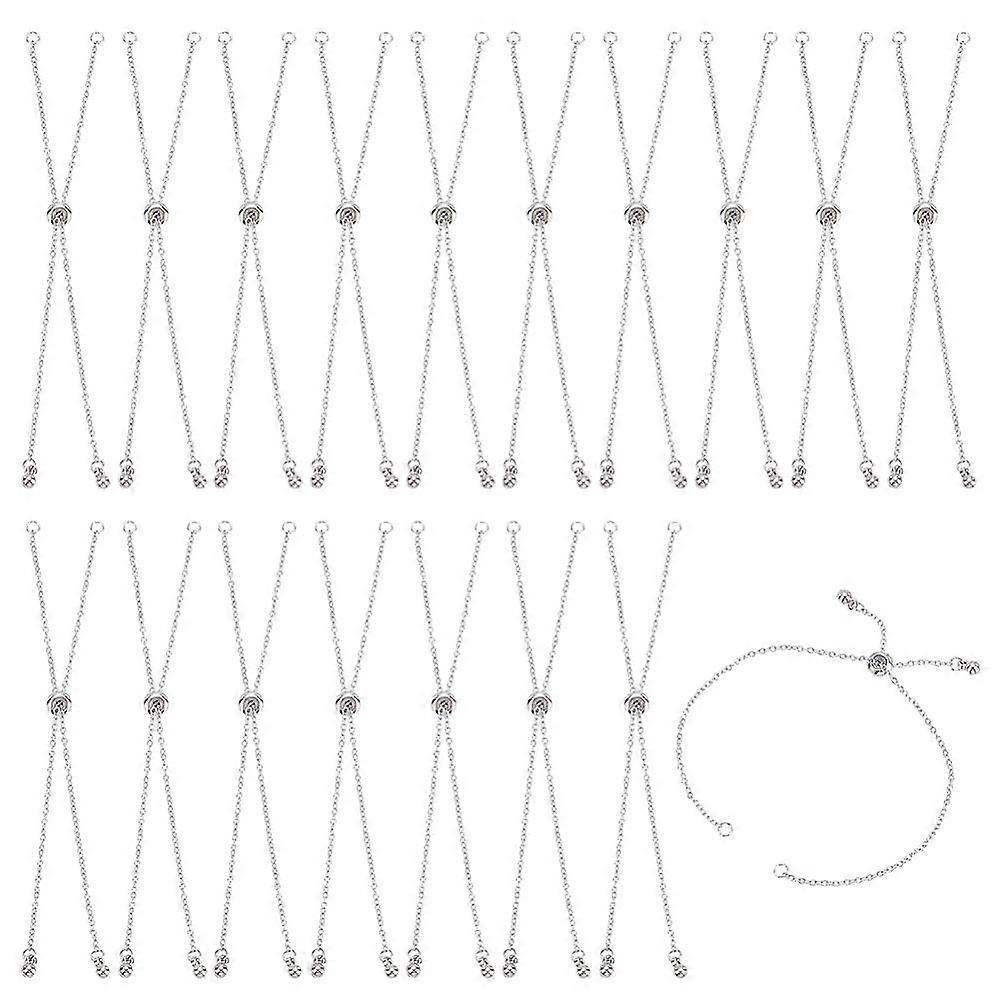 18Pcs Adjustable Slider Bracelets 304 Stainless Steel Slider Extenders 9 Inches Silver Cable Chains with Brass Bead for Women Friendship DIY Necklaces