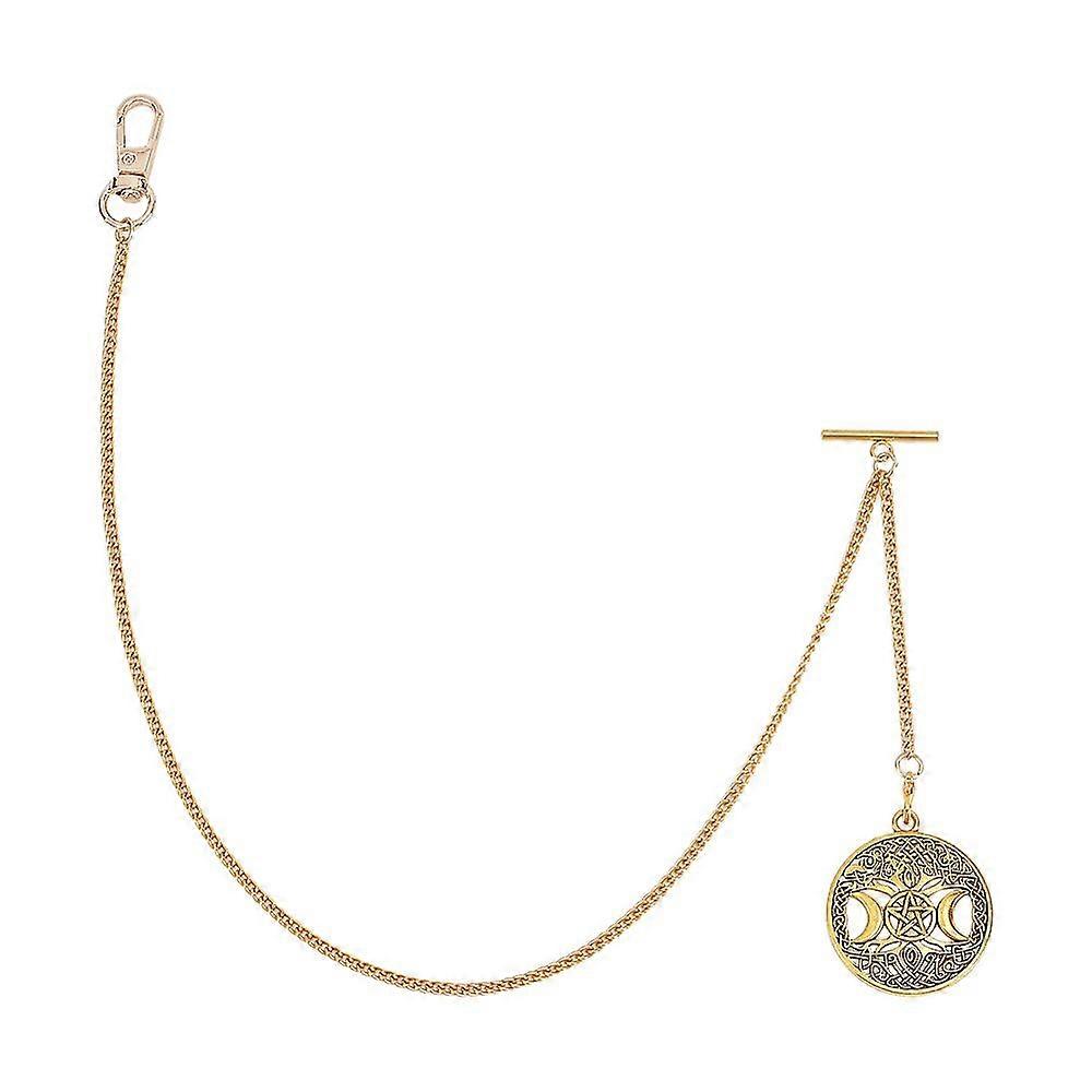 Pocket Watch Chain 19.5 Inch Metal Wallet Chain Pocket Watch Fob T Bar Men's Link Vintage Style Golden Moon Goddess Watch Chain, Pendant: 1.5 Inch