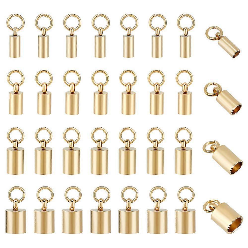 32pcs 4 Styles Stainless Steel Cord Ends Barrel End Caps Cord End Caps Golden Column Leather Cord Ends Jewelry Making End Caps Terminators Cord Bracel