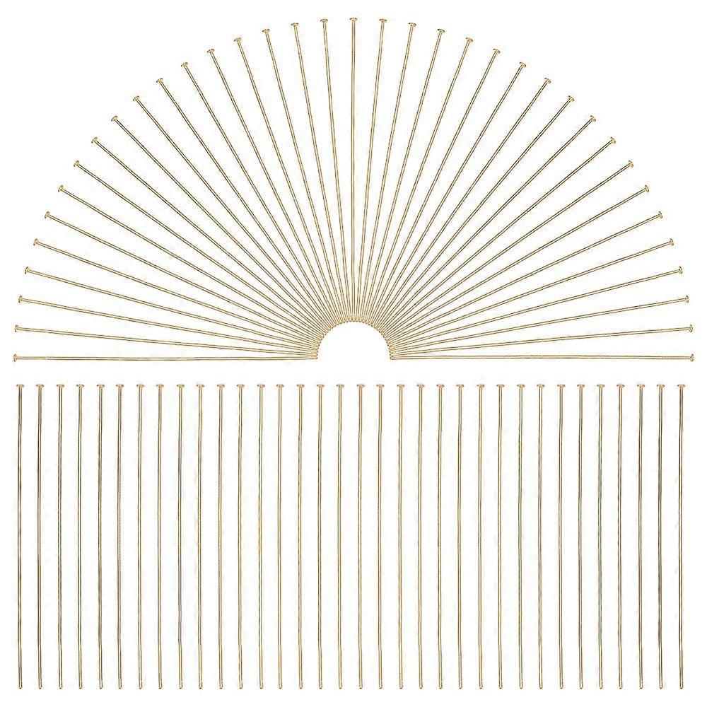 300Pcs 18K Gold Plated Flat Head Pins 2Inch 304 Stainless Steel Straight Head Pins Findings Jewelry Making Pin Metal End Headpins for Craft Earring Br