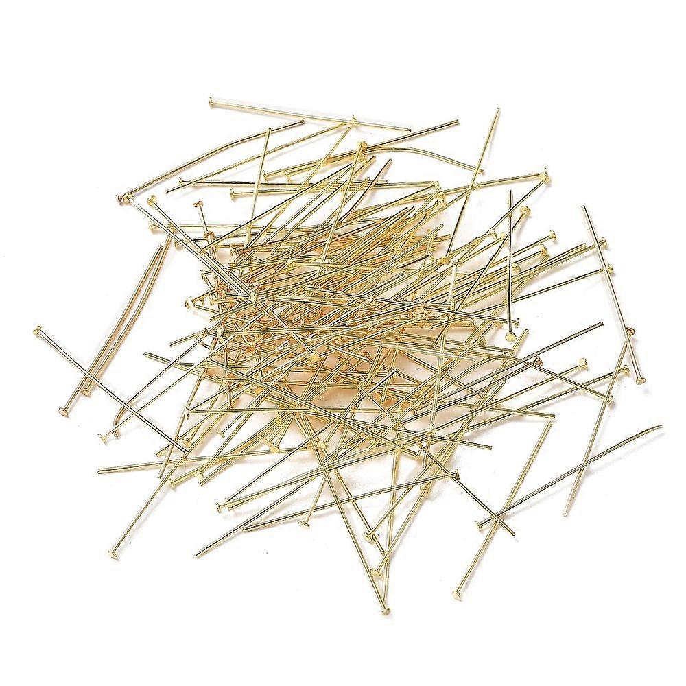 300pcs Golden Stainless Steel Flat Head Pins Metal Eye Pins Findings 30mm Straight Flat Head Pins Earring Pins for Earring Bracelet Jewelry Making