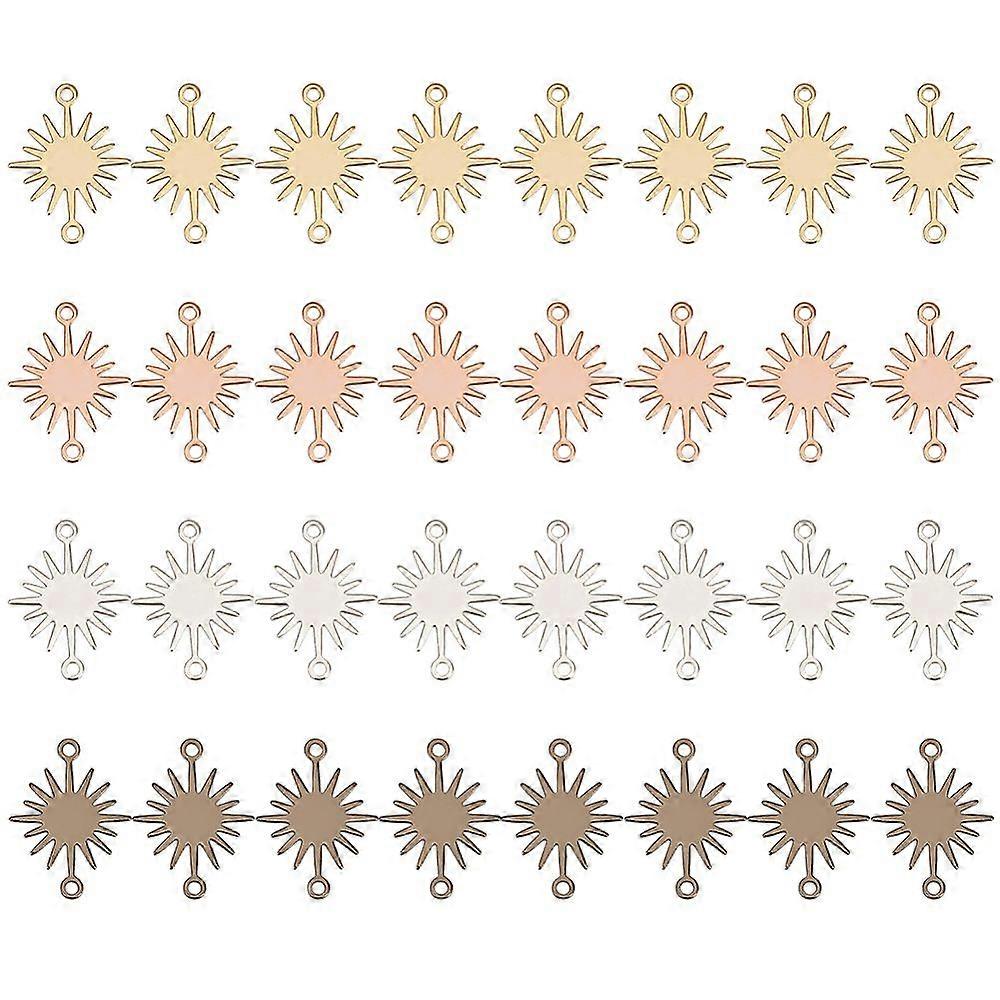 32Pcs 4 Colors Sun Link Connector Charms, Real 24K Gold 925 Sterling Silver Plated Raw Brass Link Charms, 2-Hole Pendant for Bracelets DIY Jewelry Mak