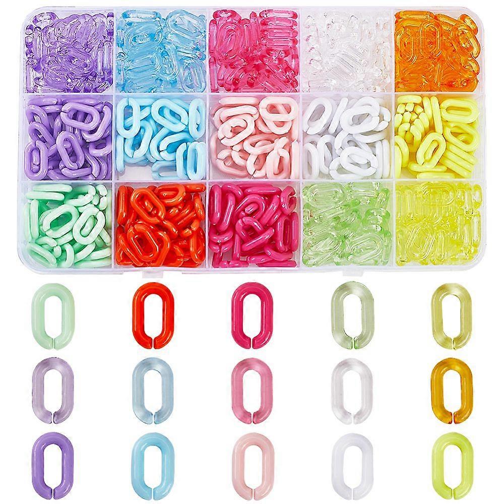 480Pcs 15 Colors Acrylic Link Chain Linking Rings Jewelry Oval Colorful Rainbow Opaque Transparent Cable Curb Open Quick Link Connectors for Jewelry M